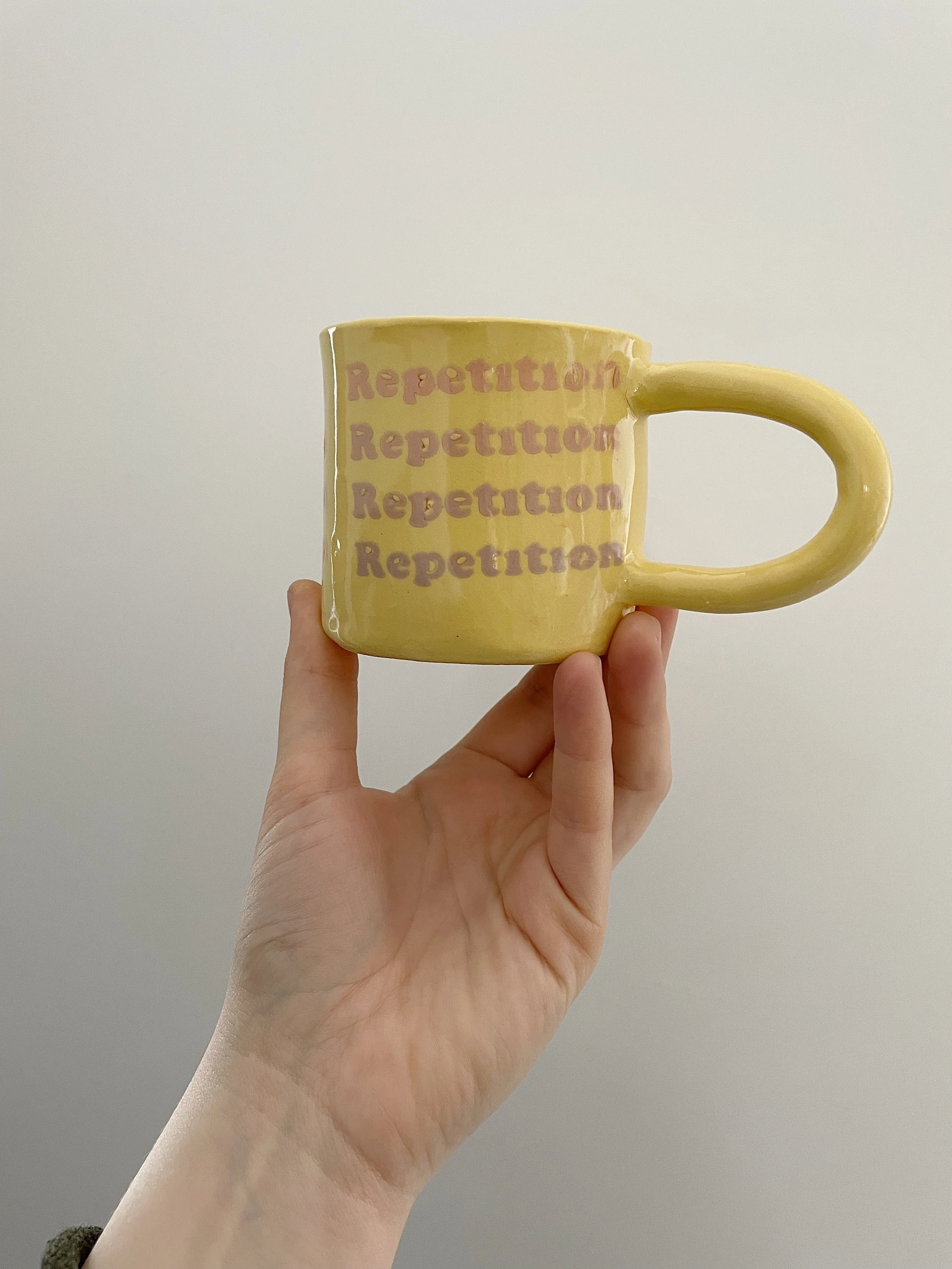 I am really excited about transitioning the color of the words. It’s doing something for me! For my next batch I want to focus more on that aspect. The idea of change coming out of the repetition of a thought/action, like a visual representation of energy. It would make a great manifesting mug. Especially since i’m trying to manifest more energy for myself. If I have a mug to remind me to manifest while I drink coffee out of it. I think I could get a lot done.